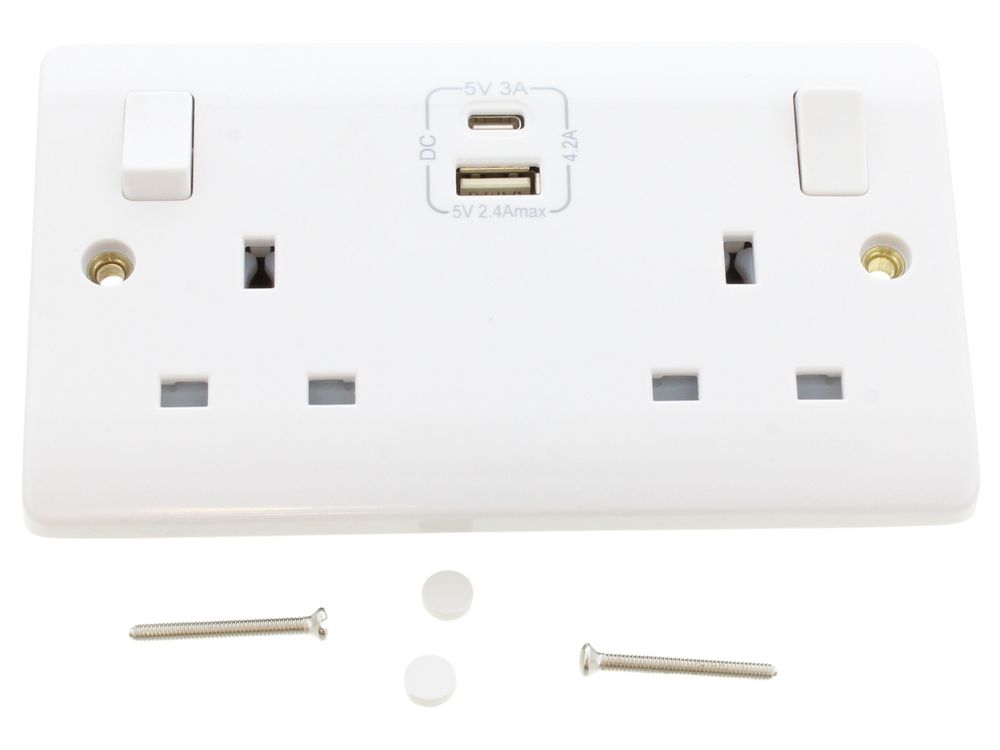 MODE CMA786 13A 2GANG SP SWITCHED SOCKET WITH 1X1A TYPE AX3A TYPEC USB